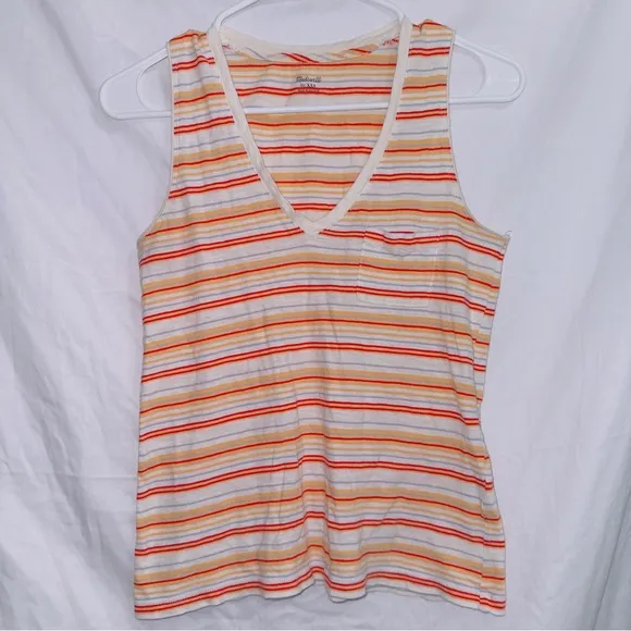 Madewell Sleeveless Whisper Cotton V Neck Pocket Tank in Stripes Condition: good preowned conditi... Show more