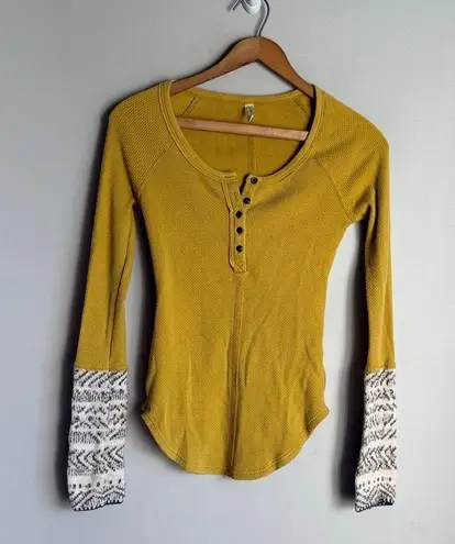 Excellent condition Henley style thermal with soft sweater knit cuffs, featuring an alpine design.... Show more