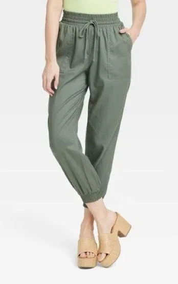 Fit & style • Solid high-rise ankle jogger pants • Lightweight fabric • Drawstring waistband • Slim... Show more