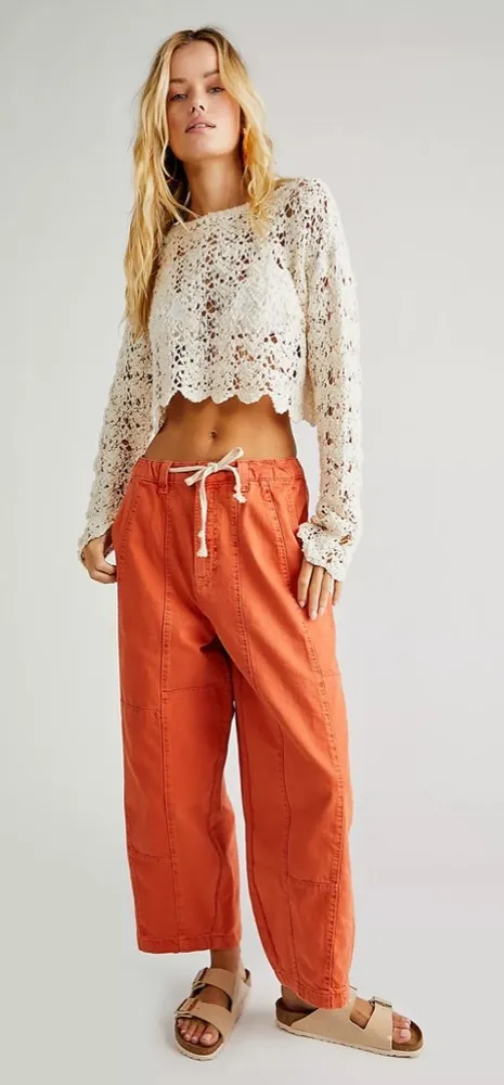 Like New. We The Free Yuki Barrel Jeans in Burnt Orange. No Flaws.