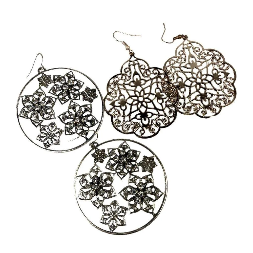 . Unbranded. • Includes 2 pairs of earrings • Floral cutout and rhinestone designs • Hook clos... Show more