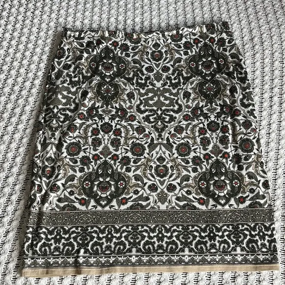 Size M Color Cream/Green Good condition Lined Pull on Printed throughout 15” waist 21.5” length