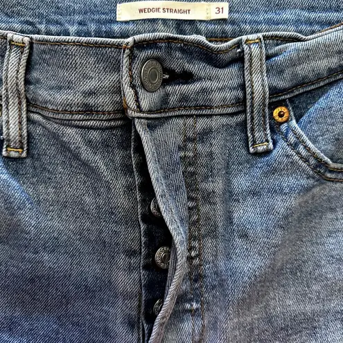 Levi's Wedgie Straight Jeans High Rise Distressed Raw Hem Cropped Denim Medium Wash W31 L28 on... Show more