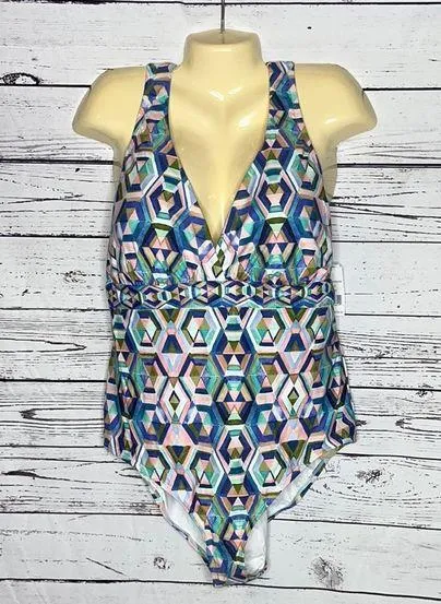 La Blanca Size 20W Geometric Print One Piece Bathing Suit. Surplice, V-Neckline. Lightly Padded Bust... Show more