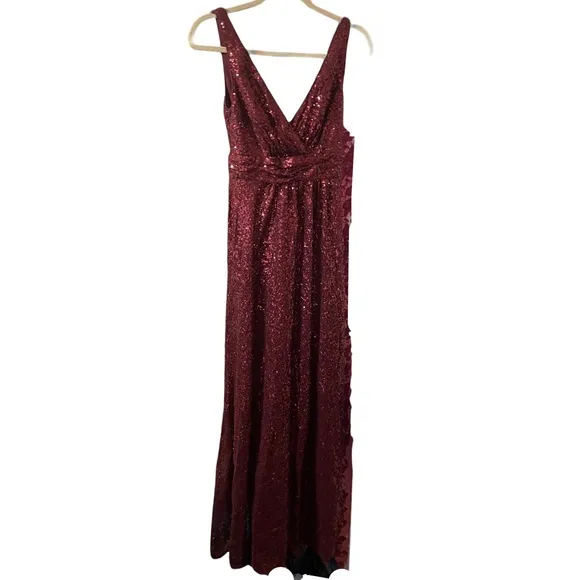 Pre owned excellent condition gorgeous burgundy sequin gown. This could make a great prom dress! WOM... Show more