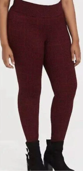Inseam - 24” Rise - 11” Waist flat measurement- 18.5” Houndstooth plaid Ponte Knit fabric Pull-on st... Show more
