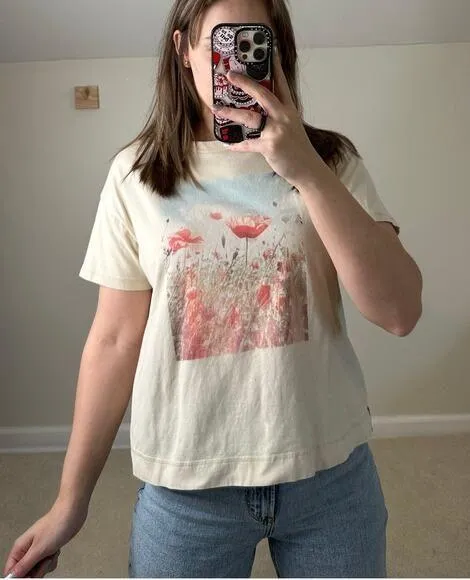 Couple bleach spots on front, kind of matches the faded style of the graphic. Still has lots of life... Show more