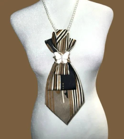 “Dainty Dapper”Striped Necktie Necklace with Butterfly Pendant Black - $27 - From linda