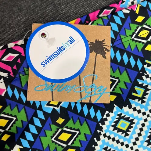 Swimsuits For All Swim Sexy Bikini Bottom Womens Size 16 Multicolor Geometric Boho New with tags/New in package Elastic waist Full coverage High waist silhouette Geometric pattern Power Mesh tummy-control 82% Nylon, 18% Spandex Lining: 100% Polyester Hand wash cold waist 15" rise 17" leg opening 9" swimwear, mix and match, stretch, breathable, comfort, colorful, beach, resort, pool party, cruise, travel, vacation