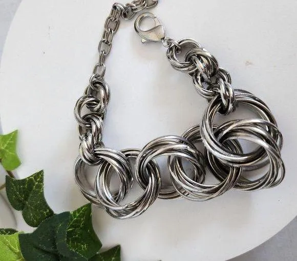 beautiful vintage bracelet Silver tone Chunky Multi circle link chain Lobster claw @J silver vintage circles casual dressy work office fashion staple everyday simple style classic Chunky
