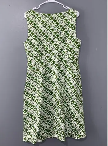 Like New Spense Green & White Abstract Floral Sleeveless V Neck Sheath Summer Dress Sz 12 Lined Zips... Show more