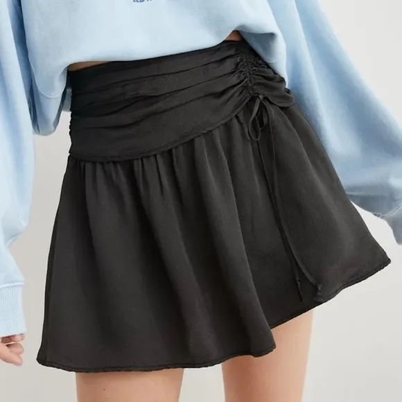 NWT Aerie Uptown Mini Skirt Size S Color Black Textured Satin Fabric Front Fold Over with Ruched... Show more