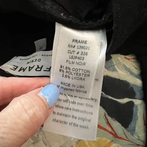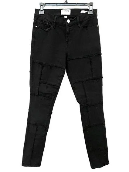 Black film noir Le Skinny De Jeanne seamed/patchwork blocked jeans by Frame Denim in size 29. Excell... Show more
