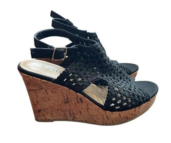 Mudd Festival Cork Wedge Sandal Crochet Mesh Black women’s size 9 New without box 3.75” wedge &... Show more