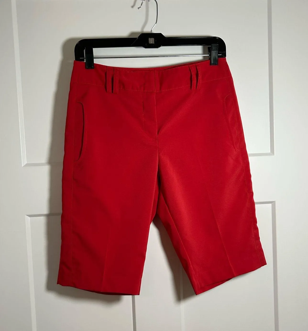 1 item. Bette and Court women's size 4 golf Bermuda shorts, red golf shorts with pockets and belt loops. Women’s XS golf shorts, women’s small golf shorts/women’s long Bermuda golf shorts. Size 4 Bermuda shorts. 11.5” inseam/length measured. High waisted fit. See measurements for exact fit. Bette and Court flex smooth fit shorts. Very very nice condition, worn once. Can bundle shipping with my other items. Ships fast!