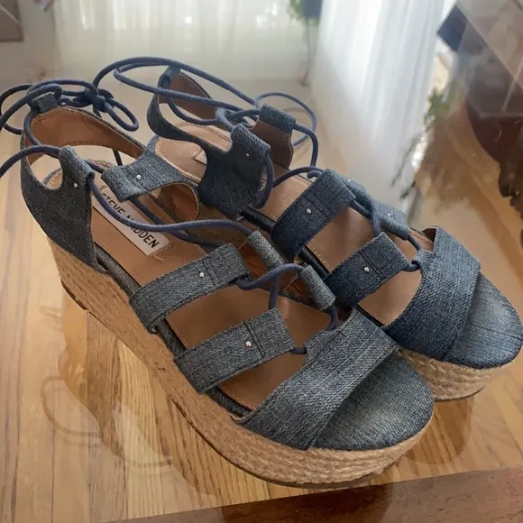 Cute fall denim espadrilles Lace up platform espadrilles