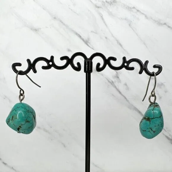 Silver Tone Faux Turquoise Beaded Dangle Earrings Pierced Pair - $7 - From Accessory