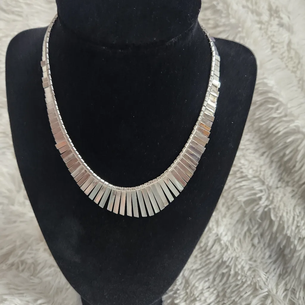Collar necklace, fringe metal detail Clasp closure Length: 16.5 inches Beautiful statement necklace!