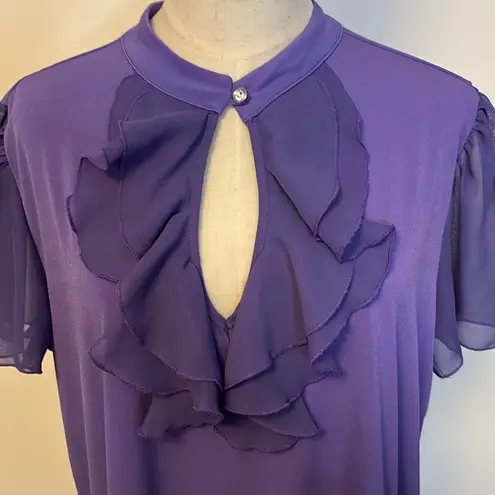 Lane Bryant purple frilly top with rhinestone button, size 18/20