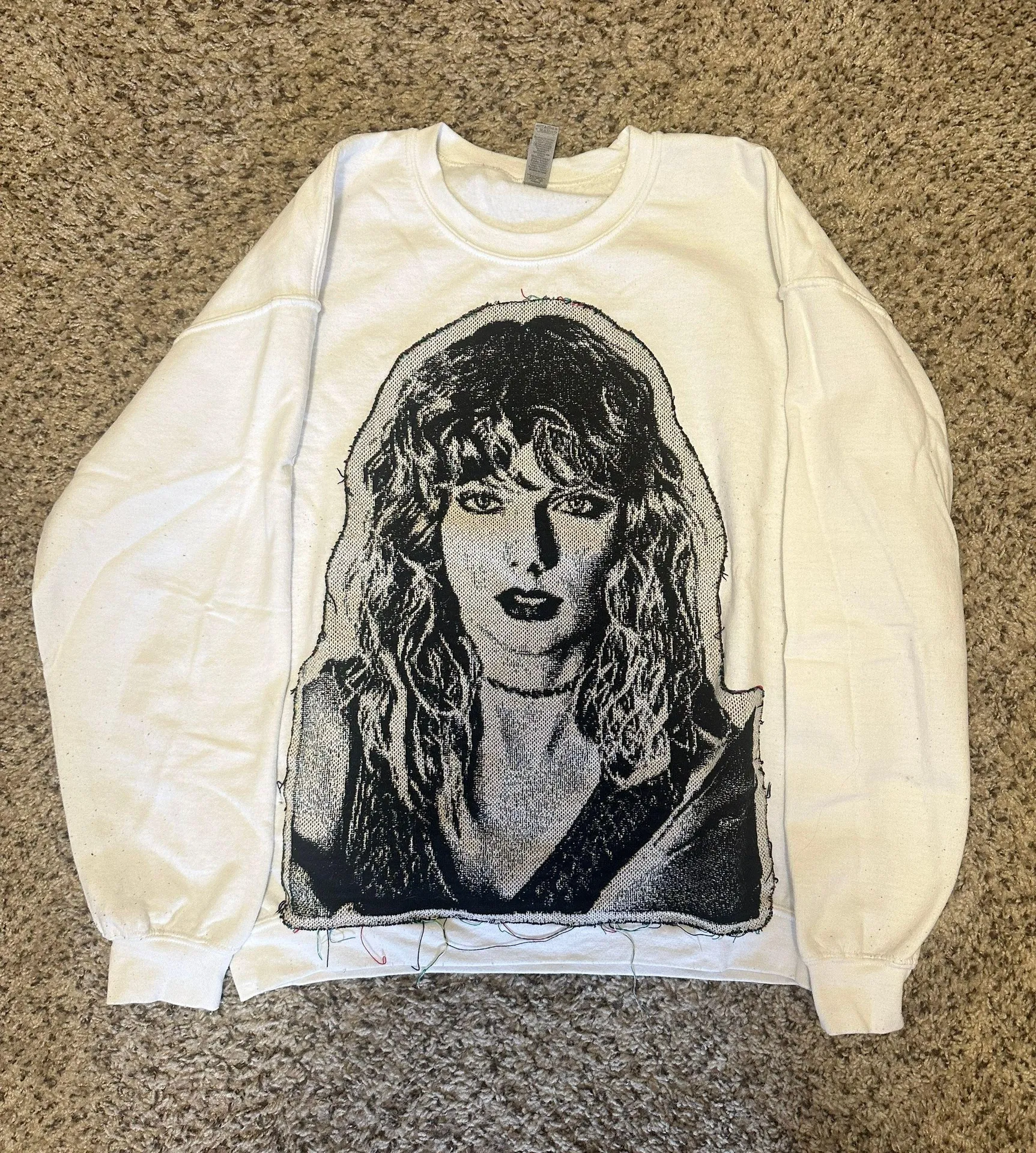 Bought at a vintage show from someone who makes these and sews on blankets of your favorite artists to vintage crewnecks and hoodies. So cute but I have 3 of them and only wear one!! There is wear as shown in pics by pilling but could be easily removed with a pilling shaver (I have one and would be willing to do this for you before shipping)!