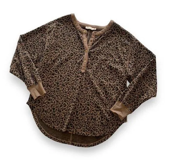 Features: Lush Leopard Print Curved Hem Oversized 3/4 Length Sleeve Shirt; snap button up details, t... Show more