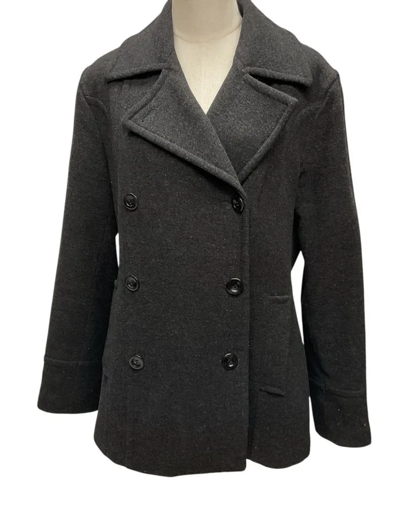 St. John's Bay Women's Wool Cashmere Double Breasted Pea Coat Black Size Large Wide lapel Double br... Show more