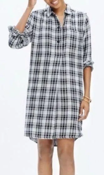 Excellent used condition (worn 1x) size XS Madewell 'Latitude' Buffalo Check Flannel Shirtdress Men... Show more