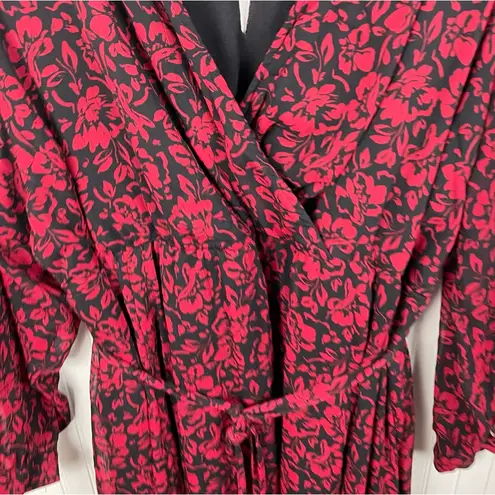 Torrid Midi Crinkle Chiffon Surplice Balloon Sleeve Dress Black and red floral print Crinkle chiff... Show more