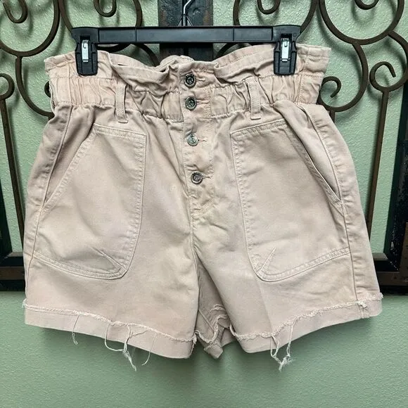 Zara blush pink denim Paper bag high rise Shorts Size 6