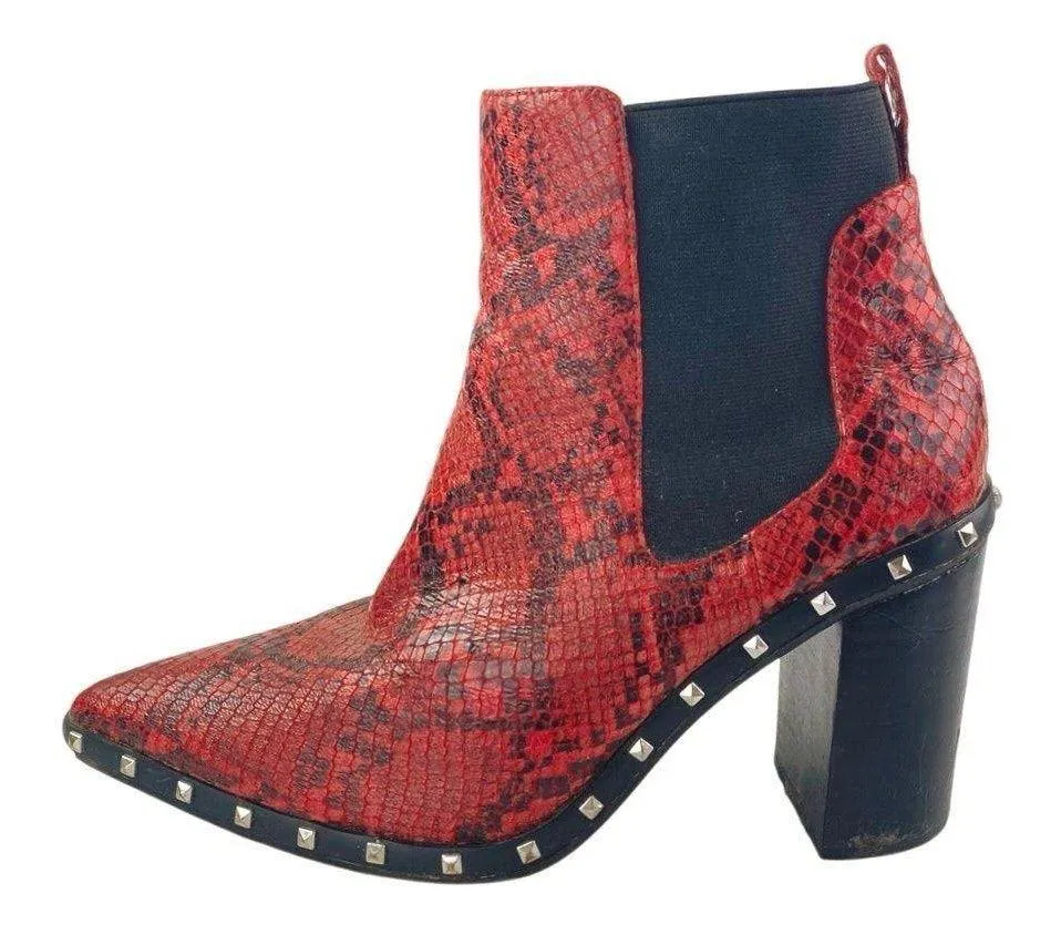 Charles by Charles David Dodger Red Snakeskin Leather Studded Chelsea Boots 7.5M Size 7.5 - $56 - From Brie