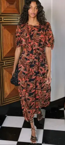 Cleobella Paige Chiffon Abstract Printed Ruffle Midi Dress in Canyon Size xs Red - $100 - From Miriam