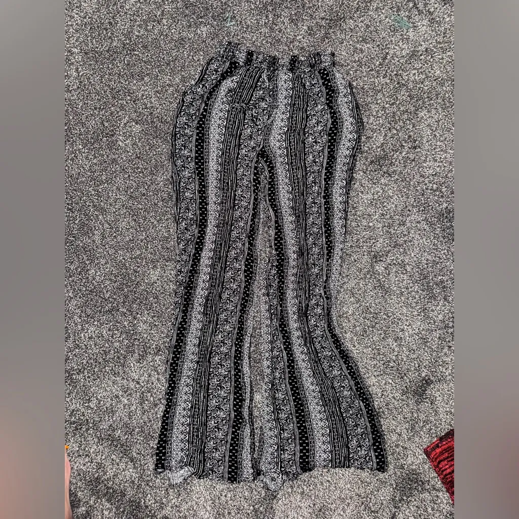 Chic black and white flare pants. Eye-catching pattern. Ideal for stylish outings.