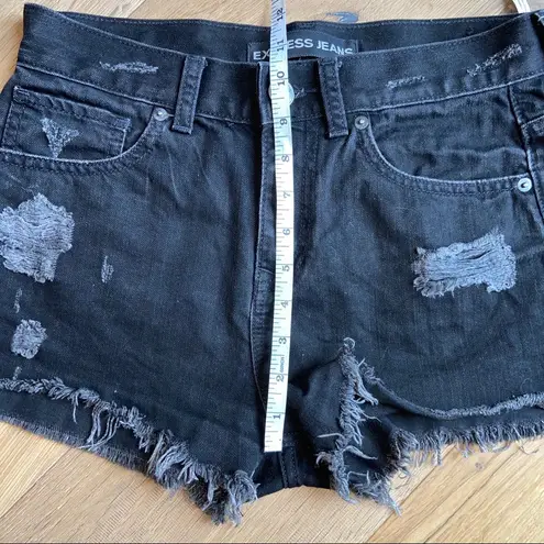 Express size 2 Black denim shorts Raw hem distressed fade look B2