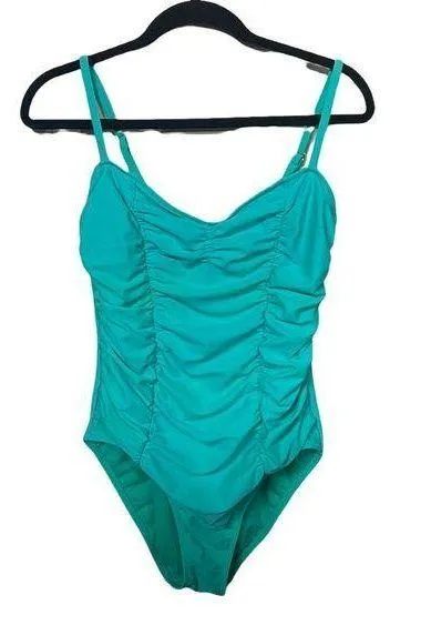 ABS turquoise ruched front size 10 one piece bathing suit. - $26 (79% Off Retail) - From Zoe