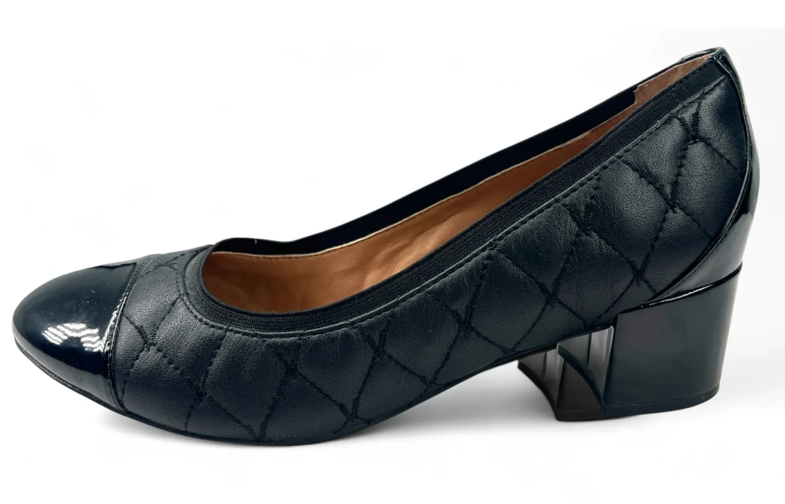 Vionic Ruby Quilted Leather Block Heel Pump 8 Slip On Stretch Womens Black - $32 - From Sourced In SoCa