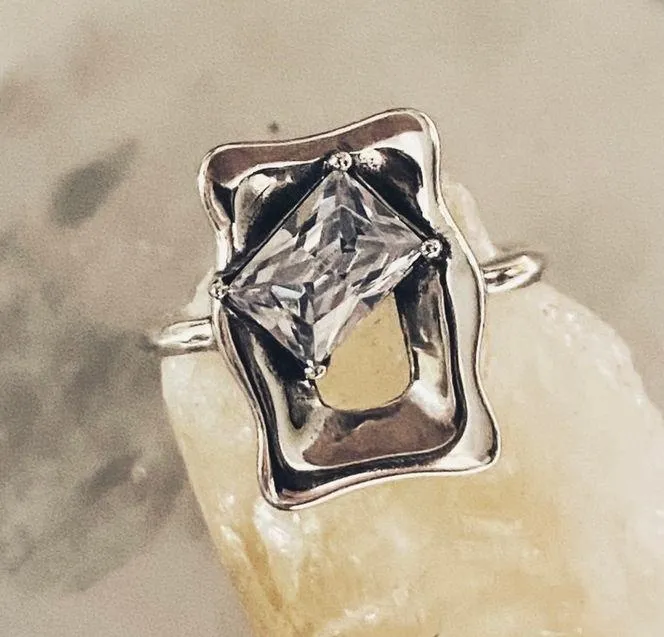 Womens Sterling Silver Geometric Glass Stone Adjustable Ring High Quality Main Stone: Cubic Zirconia Main Stone Quantity: 1 Metal Material: Solid 925 Sterling Silver Ring Size: Open Size/Adjustable Total Weight: 3.4-3.8g Tags Vintage rings, sterling silver rings, instagram trending, trending, minimalist, Ajustable rings,