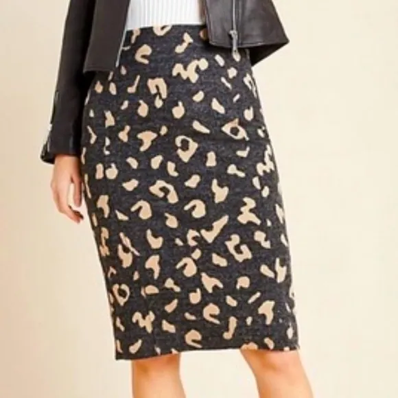 Anthropologie Maeve Delphine sweater knit pencil skirt Leopard print Size M Side zipper with hook an... Show more