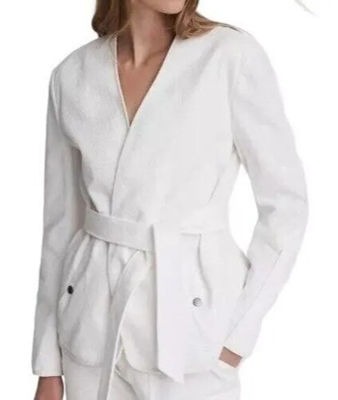 Rag & Bone Womens Abby Cotton Jacket Sz XS White Relaxed Fit Open Front Belted Minimalist