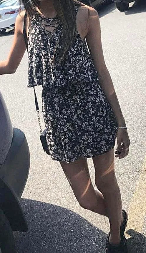 American Eagle Black Floral Romper Size XXS