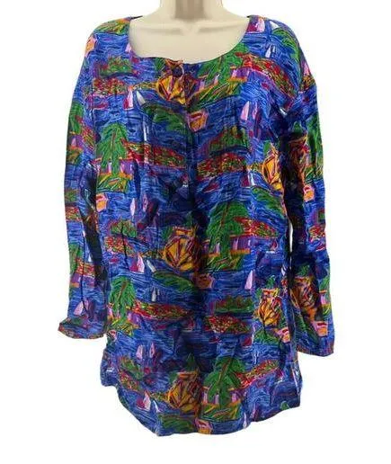 Vintage Ken Done Womens Art to Wear Hawaiian Vacation Ocean Boats -Art to Wear -Colorful Print -Lon... Show more