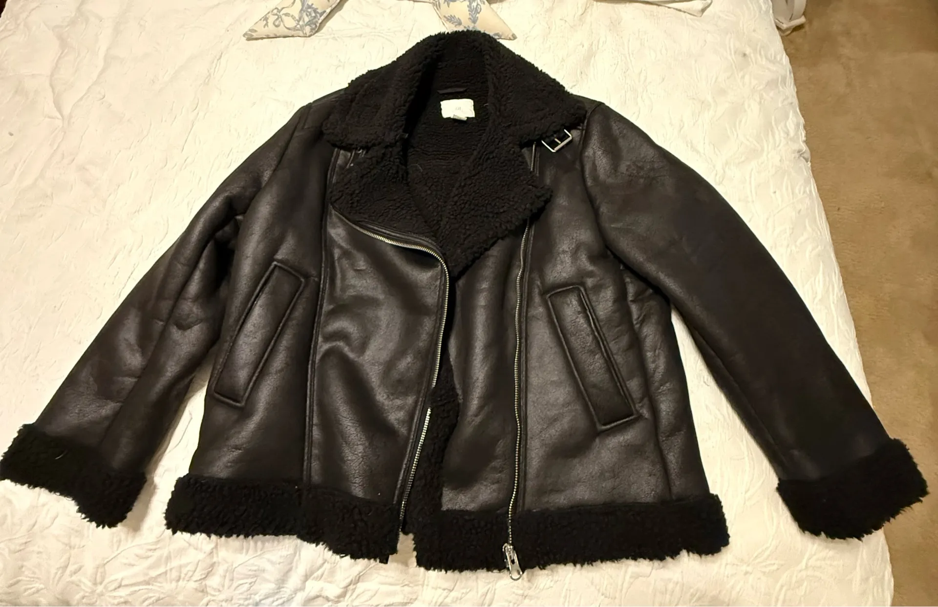 H&M black fur faux leather jacket Never worn before Super warm Oversized
