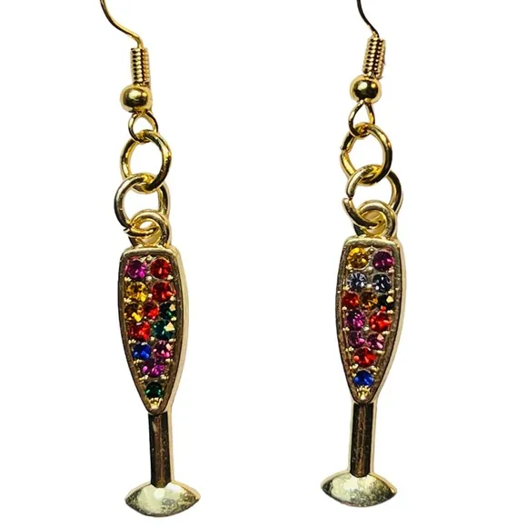 Champagne Glasses Rhinestone Gold Tone Dangle Pierced Earrings New - $15 New With Tags - From Shari
