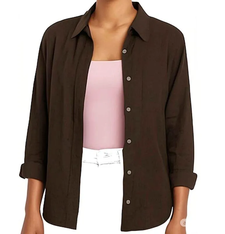 Max Mara Button Down Shirt 100% Linen 3/4 Sleeve Collared Regular Fit Brown 10 - $80 - From Pearl