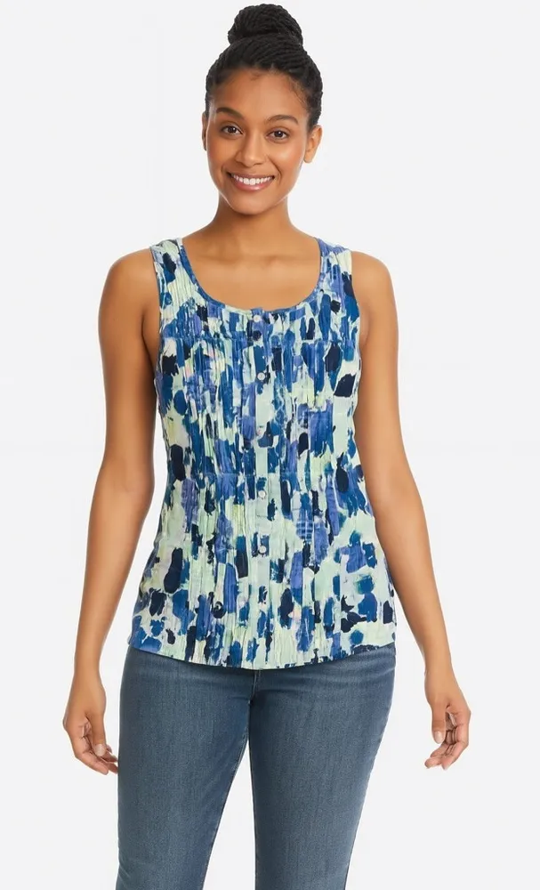 Basic Editions Blue Floral Sleeveless Blouse Size 2X Green - $15 New With Tags - From sondra