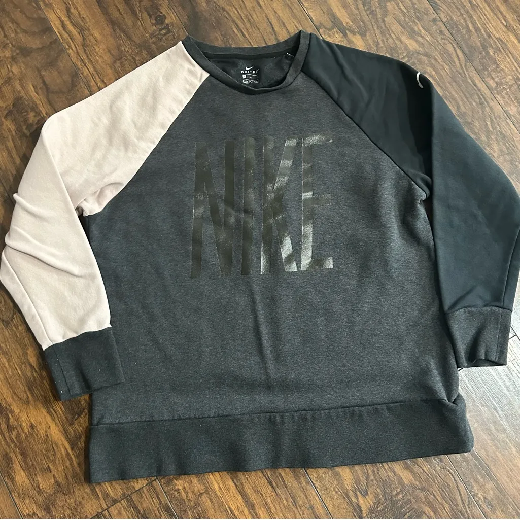 Elevate your look with this Nike dri-fit crewneck. Bold black, pink and gray tones. Perfect for casu... Show more
