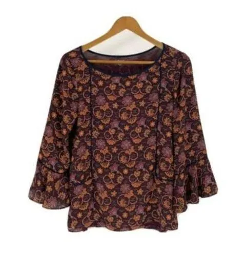 Ann Taylor Loft vintage Womens Pullover Blouse Burgundy Floral Bell Sleeve Top. Size Small/S Pleas... Show more