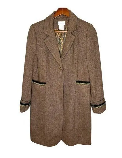 Soft Surroundings Wool Tweed Herringbone Jacket Coat pockets women small velvet detail to cuffs and... Show more