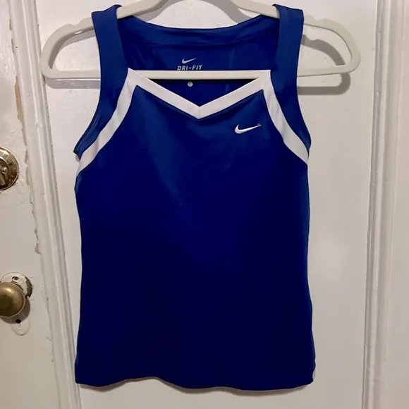 Nike Dri-fit moisture wicking fabric Royal blue and white tank top Size large L No lining or shel... Show more