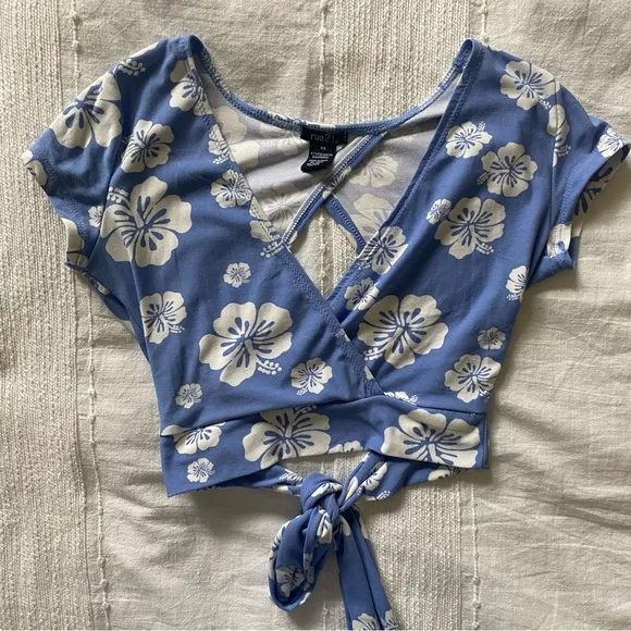 Rue21 floral open back cropped short sleeve aloha top blue Size XS Message me with questions! #rue2... Show more