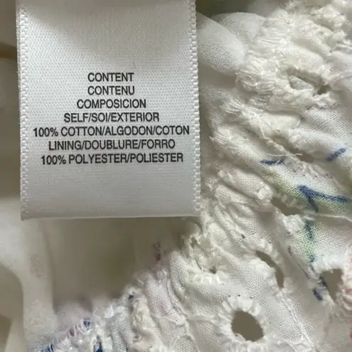 Creamy eyelet blouse with bright floral print. Short puff sleeves, faux wrap front, peplum hem. Fully lined. So pretty for Spring & Summer! Self: 100% cotton. Lining: 100% polyester. Excellent preowned condition. BRAND: WAYF SIZE: Medium COLOR: ecru summer floral PIT TO PIT: 20” LENGTH: 20” SLEEVE: 10” CONDITION: previously owned ORIGIN: China Marked sizes will vary by designer • All measurements are approximate and taken flat in inches • Color may vary on your screen. •Fast Shipping •Small Business •Carefully Packaged, Smoke-Free •5-Star Seller Tags: floral, spring, summer, eyelet, lace, feminine, romantic, cottagecore, flirty, feminine, southern casual WD